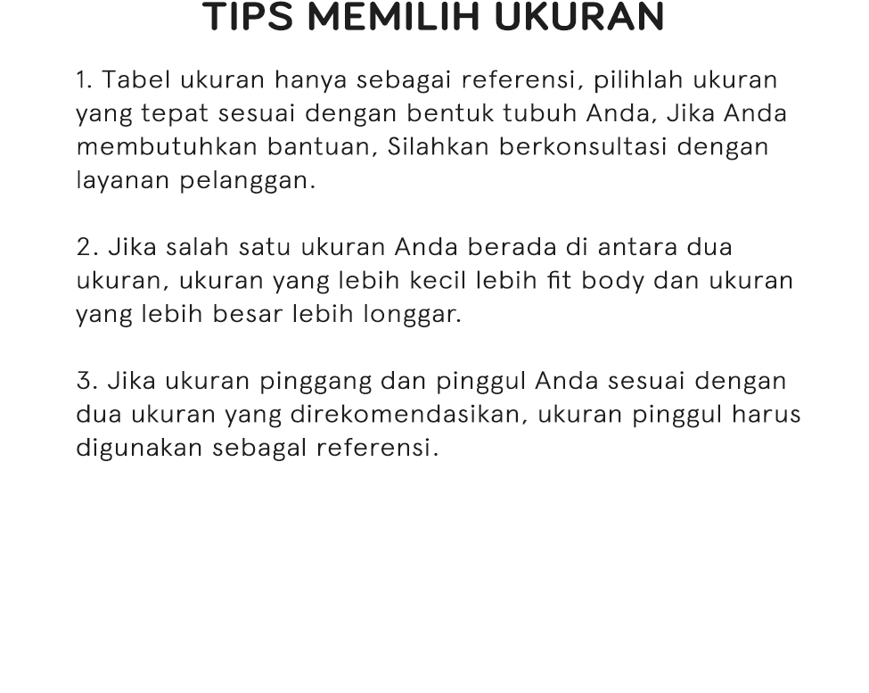 Masih ragu dengan ukuran? Silakan chat kami untuk rekomendasi size sebelum order!