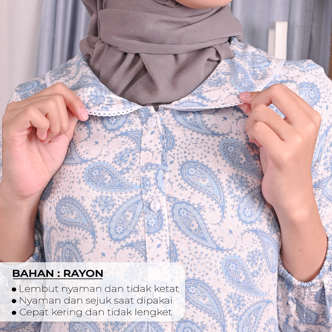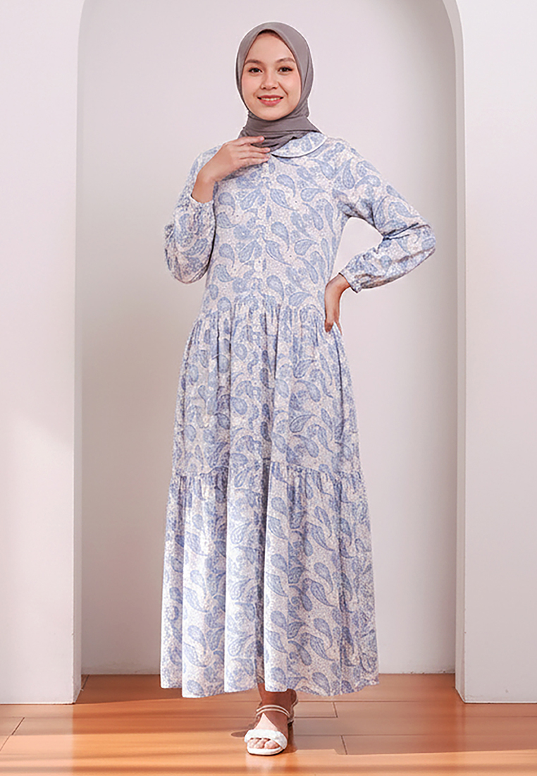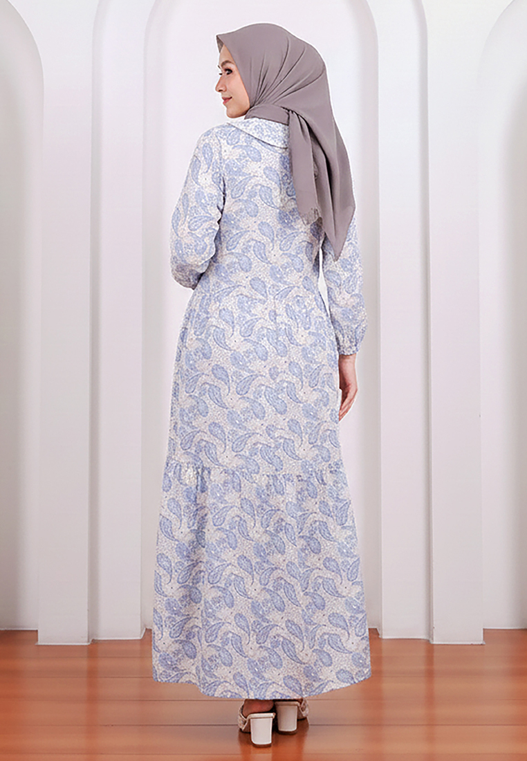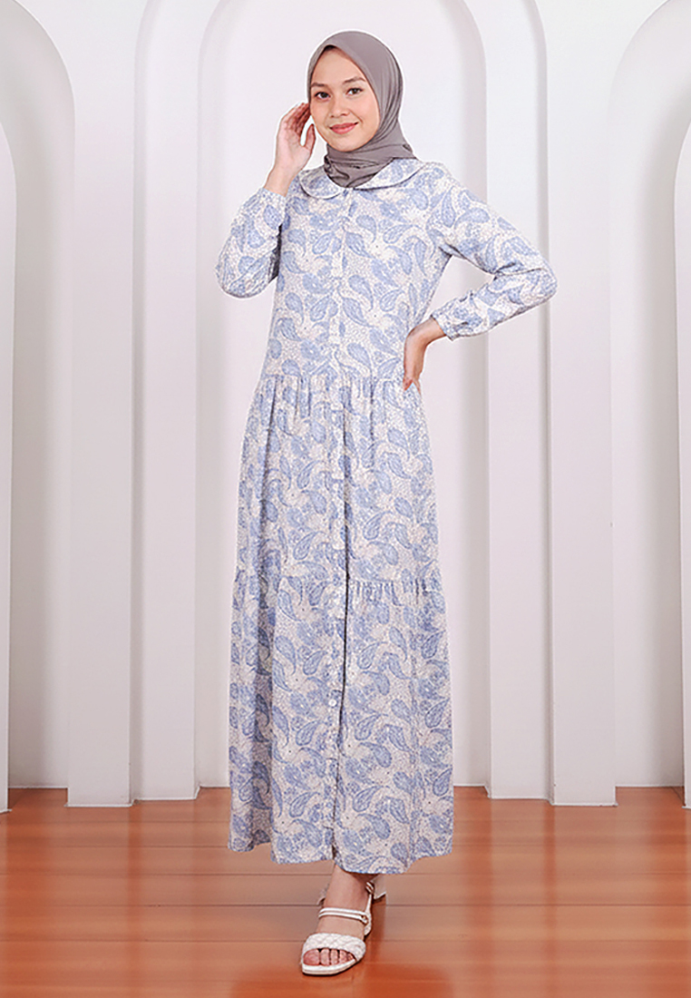 Novel Mice | Gamis Wanita Rayon Light Blue | Dress Wanita Lengan Panjang Motif Abstract
