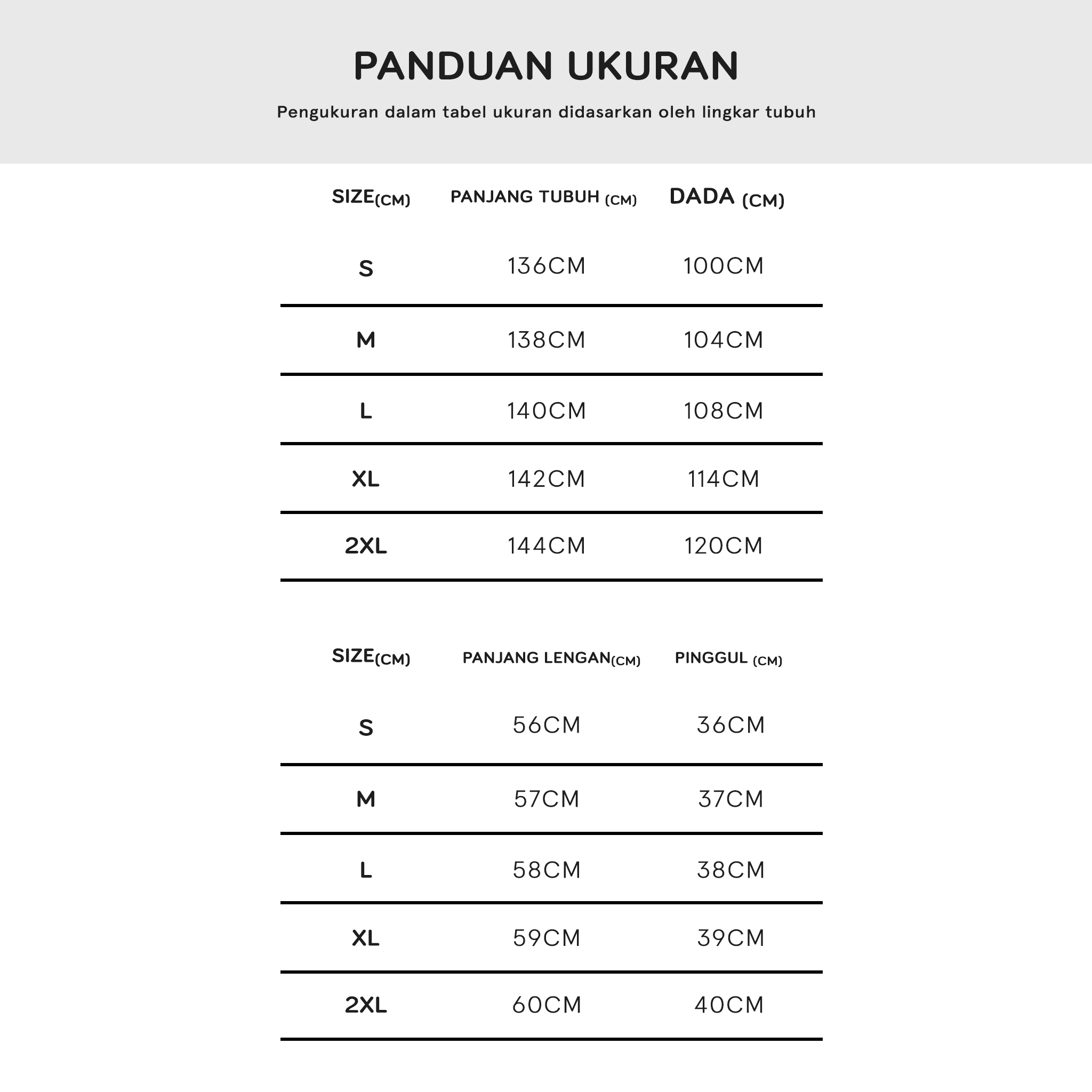 Masih ragu dengan ukuran? Silakan chat kami untuk rekomendasi size sebelum order!
