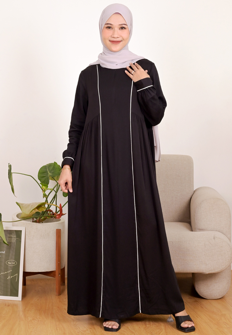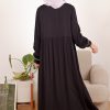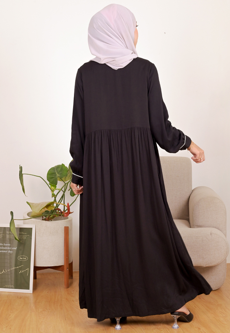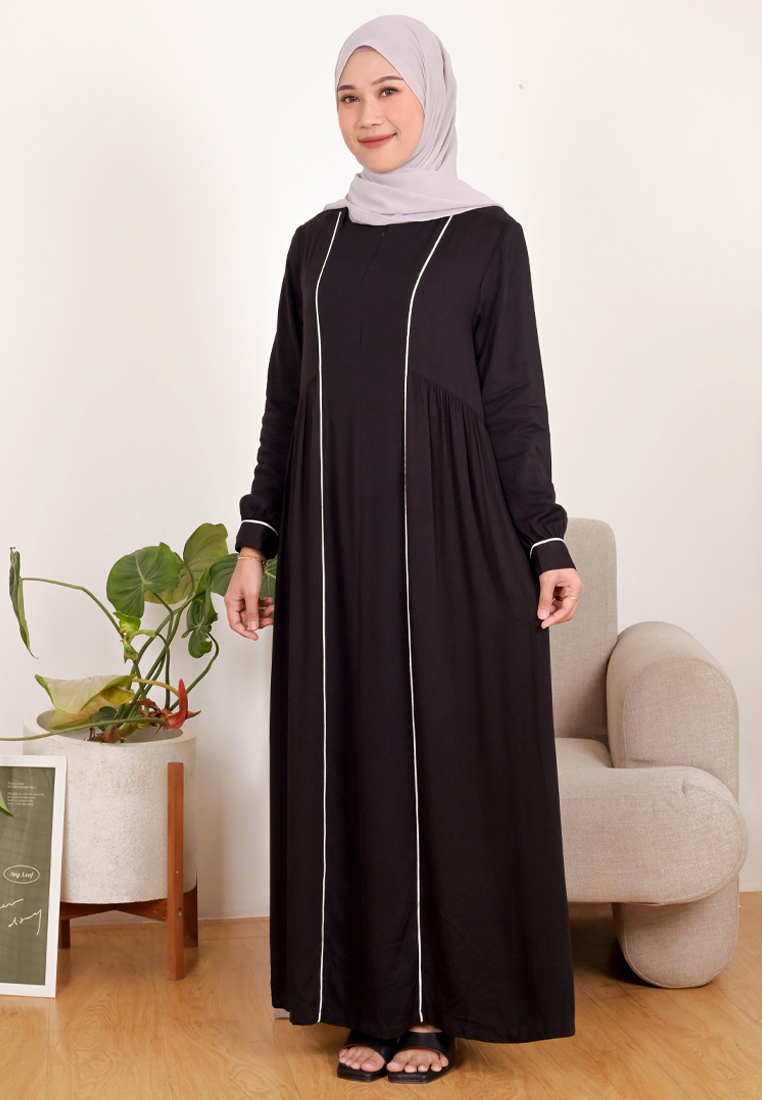 Novel Mice | Gamis Wanita Rayon Polos Elaine Hitam | Dress Wanita Lengan Panjang Motif Polos