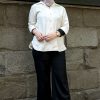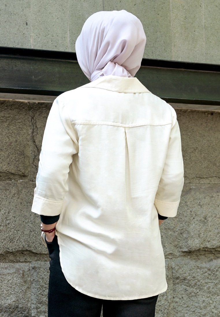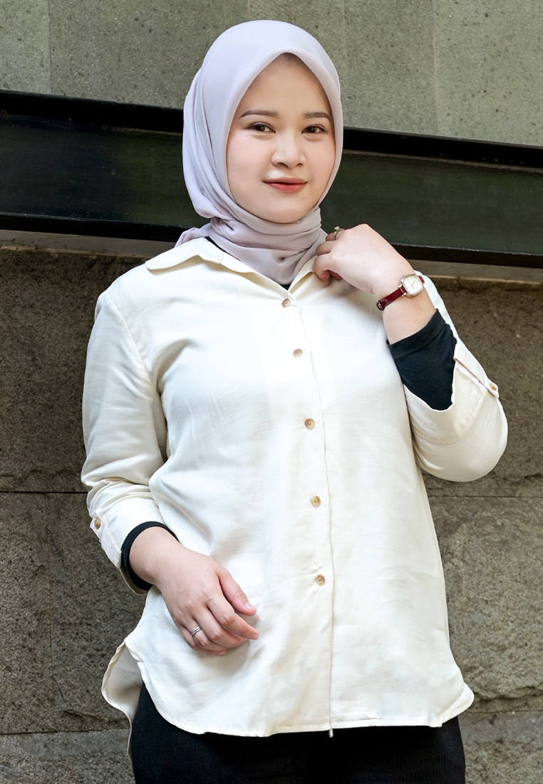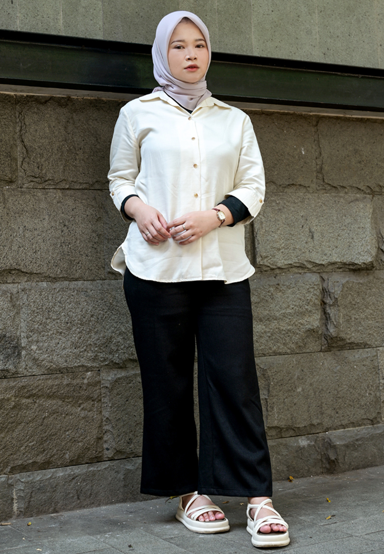 – Kemeja dengan siluet yang sedikit lebar.